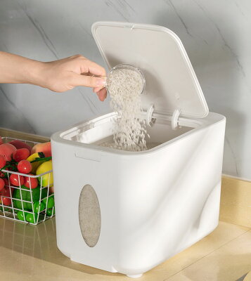 送料無料 米びつ 10kg お米収納 おしゃれ キッチン用品 キッチン収納 保存容器 ライスボックス プラスチック グレー ホワイト 楽天海外通販