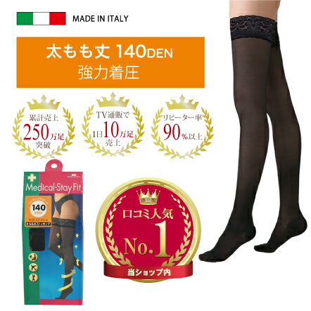 【着圧弾性ストッキング】メディカルステイフィット 太もも丈ストッキング 140デニール ブラック【レディース 透明感 素肌感】