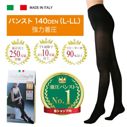 【着圧弾性ストッキング】メディカルステイフィット パンスト140デニール L-LL ブラック 【強力着圧 レディース 上級者向け 】