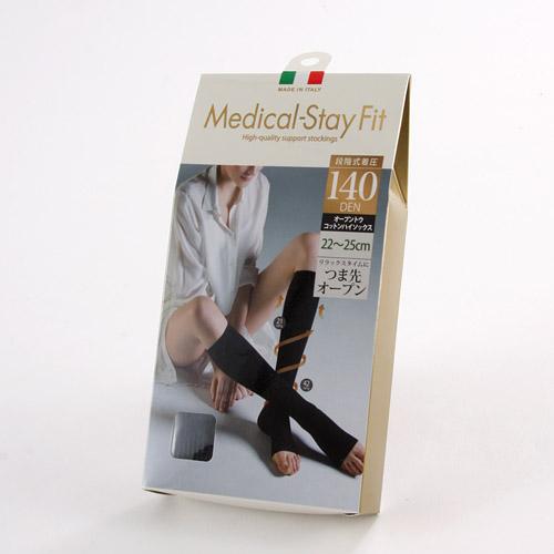 【送料無料】【Medical−Stay Fit】メディカルステイフィット オープントゥ コットン着圧ハイソックス 140デニール ブラック 22~25cm 膝下丈(靴下 超強力 強圧コットン 段階式着圧 引き締め効果 美脚) 【メール便対応】※送料込み価格