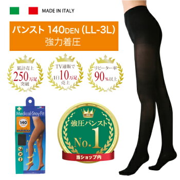 【着圧弾性ストッキング】メディカルステイフィット パンスト140デニール LL-3L ブラック 【強力着圧 レディース 上級者向け 】