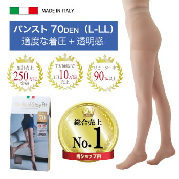 【着圧弾性ストッキング】メディカルステイフィット パンスト70デニール L-LL ヌーディーベージュ 【レディース 透明感 素肌感】