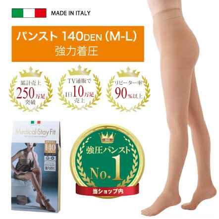 【着圧ストッキング】メディカルステイフィット パンスト140デニール M-L ヌーディーベージュ 【強力着圧 レディース 上級者向け 】弾性ストッキング 医療用機器 細みえ 美脚 履くだけ