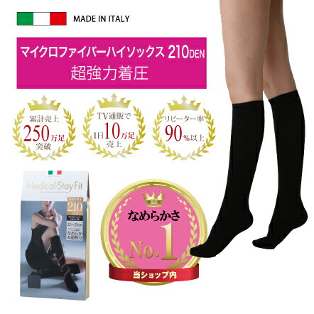 【着圧ソックス】メディカルステイフィット マイクロファイバーハイソックス 210デニール ブラック 【強力着圧 レディース 靴下 上級者向け ムレ対策】弾性ソックス 医療用機器 細みえ 美脚 履くだけ