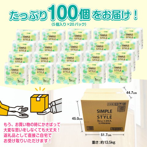 商品説明 商品名 シンプルスタイル150W/5P 内容量 300枚(150組)×5個×20パック 計100個 業者名 イデシギョー株式会社 ・ふるさと納税よくある質問はこちら ・寄附申込みのキャンセル、返礼品の変更・返品はできません。