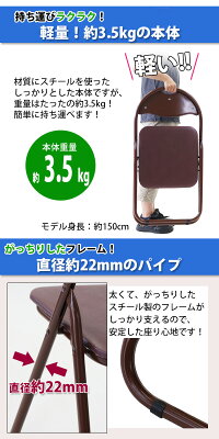 ■椅子本体の重量は約3.5kgと軽量で、背もたれには持ち手穴付きなので、持ち運びがラクラク! ■直径約22mmの太くてがっちりしたスチール製フレームがしっかりと支えるので、安定した座り心地です。