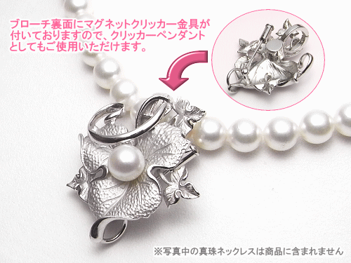 こちらのブローチには裏面にマグネットクリッカー金具を取付けておりますので、クリッカーペンダントとしてもご使用いただけます。