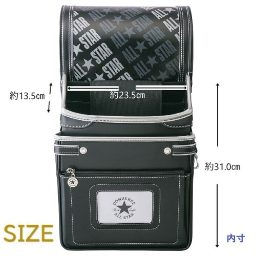 コンバース オールスター オールスターのアンクルパッチをモチーフにしたデザイン! タブレットポケットがついて機能も充実! 〇A4フラットファイル対応サイズ 〇タブレットポケット付き 品番 CV-1 カラー ブラック×ホワイト(ステッチ) ブラック×ブルー(ステッチ) マリンブルー×ホワイト(ステッチ) マチ幅 13.5cm 内寸 約31.0cmx約23.5cmx約13.5cm 総外寸 約33.5cmx約26.0cmx約22.0cm 重さ 約1170g 本体素材 クラリーノエフ 背裏素材 クラリーノロベニカ 形状 学習院 生産国 日本