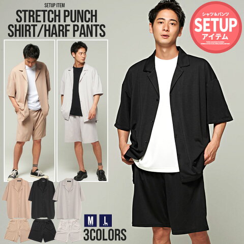 【送料無料】"セットアップ 上下セット メンズ 半袖シャツ ハーフパンツ オープンカラーシャツ 開襟シャツ 短パン ショートパンツ 軽量 清涼感 通気性 接触冷感 速乾 ストレッチ 薄手 韓国ファッション ストリート ファッション 大人 M L CavariA キャバリア"【あす楽対応】