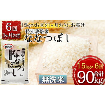 【ふるさと納税】【無洗米】特別栽培米ななつぼし計90kg 15kg(5kg×3)×1ヶ月おきに6回発送 【定期便・お米・ななつぼし・米・特別栽培米・無洗米】