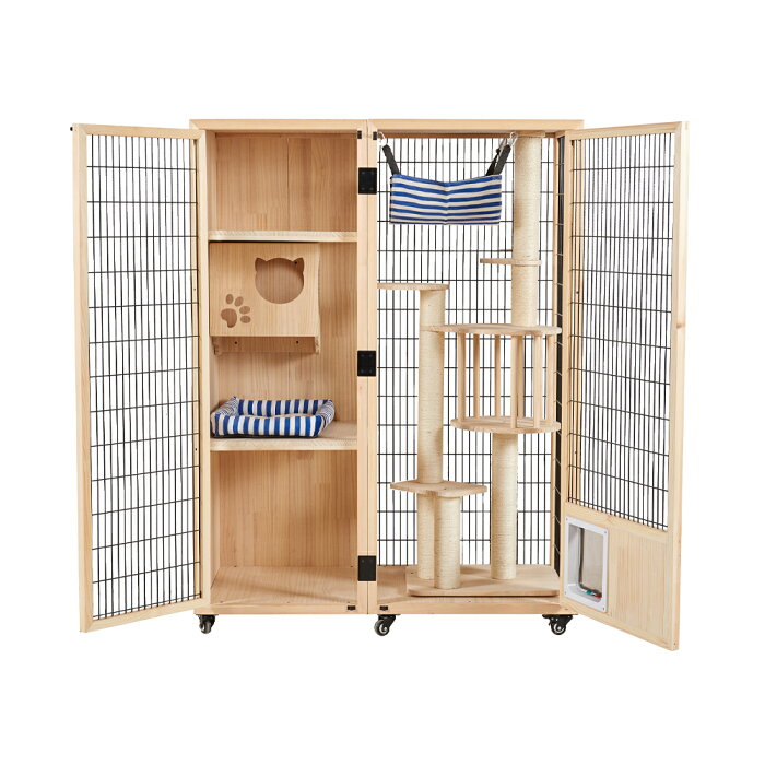 天然木 無垢材 猫 キャットハウス 一軒家 大型キャットケージ 猫 ケージ 猫ゲージ 留守番 ★